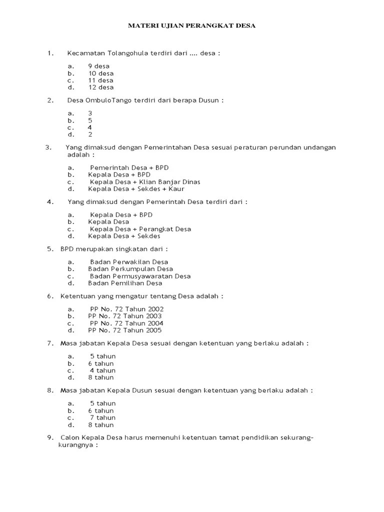 Contoh soal ujian perangkat desa + kunci jawaban.